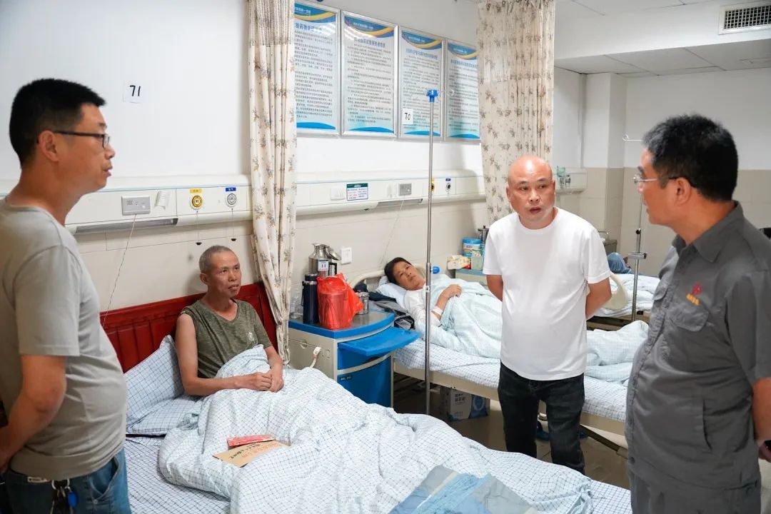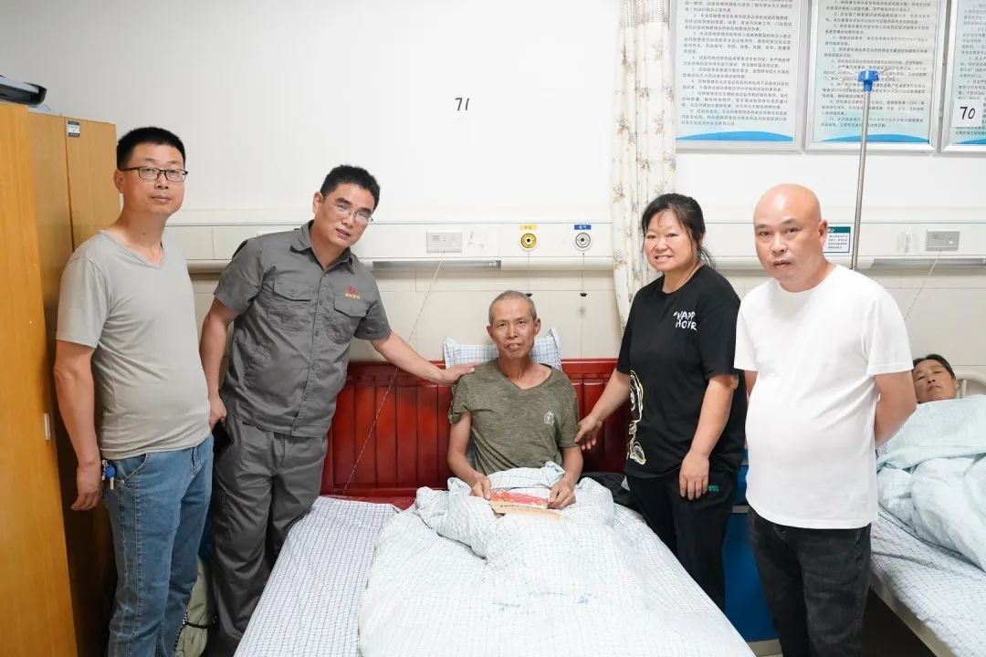 集團公司人事行政主管、分公司總經理,分公司生產經理赴醫院看望雷春平一家,了解目前生活情況,鼓勵他們積極面對困難,并為他們送去了5000元慰問金和16715元善款。