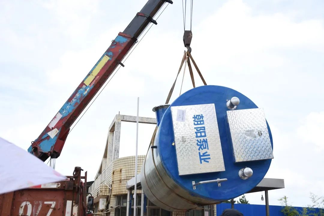 8月6日下午,朝陽集團應工業園客戶的迫切需求,經過地板支模、開挖及水泥底板安裝、吊裝、安裝筒體、管道接口聯接和回填一系列工序,順利完成了泵站的安裝。為迎接工業園接下來一周的暴雨,保證正常供水供電、維護居民日常生活工作,朝陽一體化預制泵站現已經投入使用,并表現出來出色的性能和穩定可靠的運行狀態.