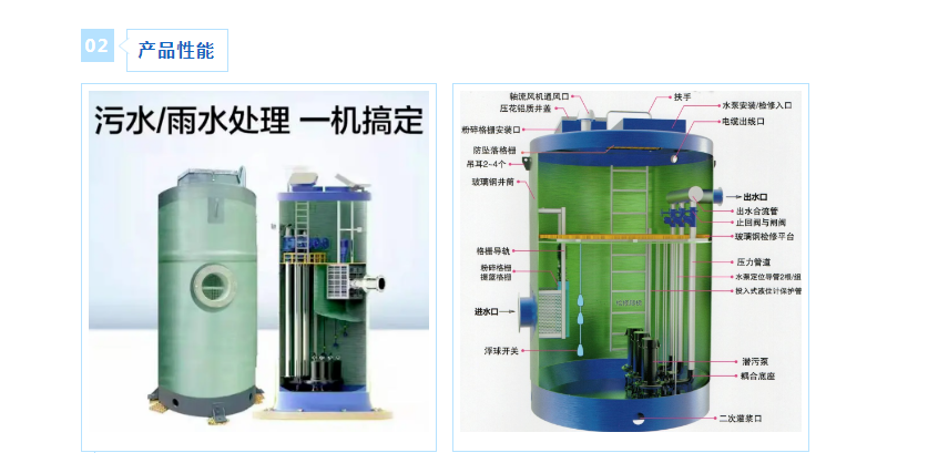 朝陽一體化預制泵站由筒體、提升設(shè)備、水泵機組系統(tǒng)、管路系統(tǒng)、控制系統(tǒng)、維護平臺、扶梯和底部板件等組件集成裝配而成。